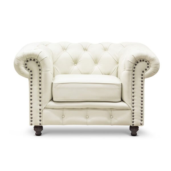 Sala 3-2-1 Chesterfield Crema 100% Piel Genuina Anilina