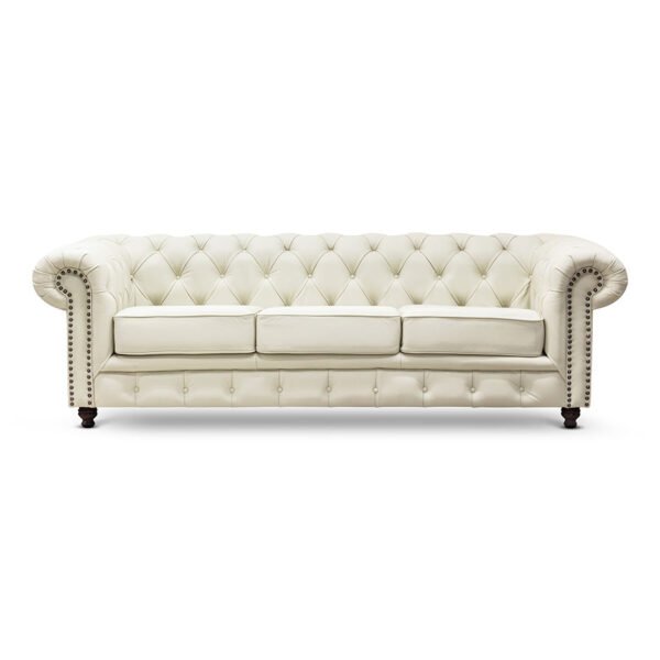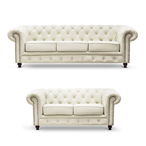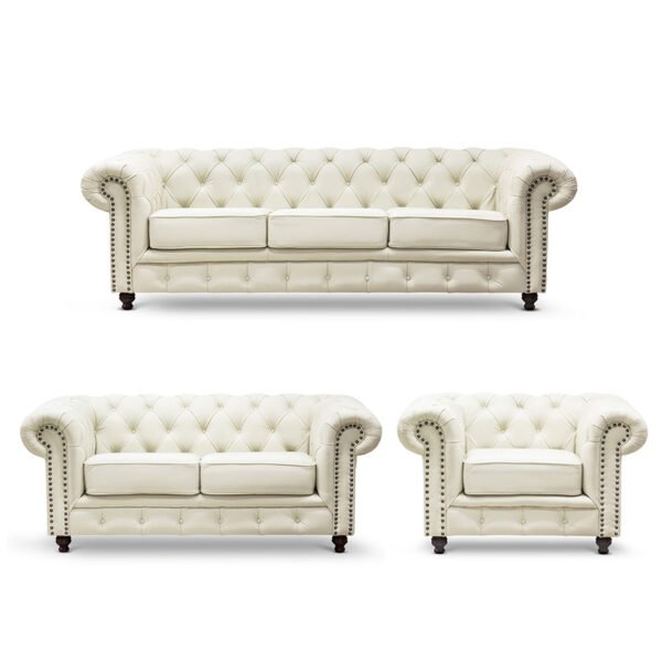 Sala 3-2 Chesterfield 100% Piel Genuina CREMA