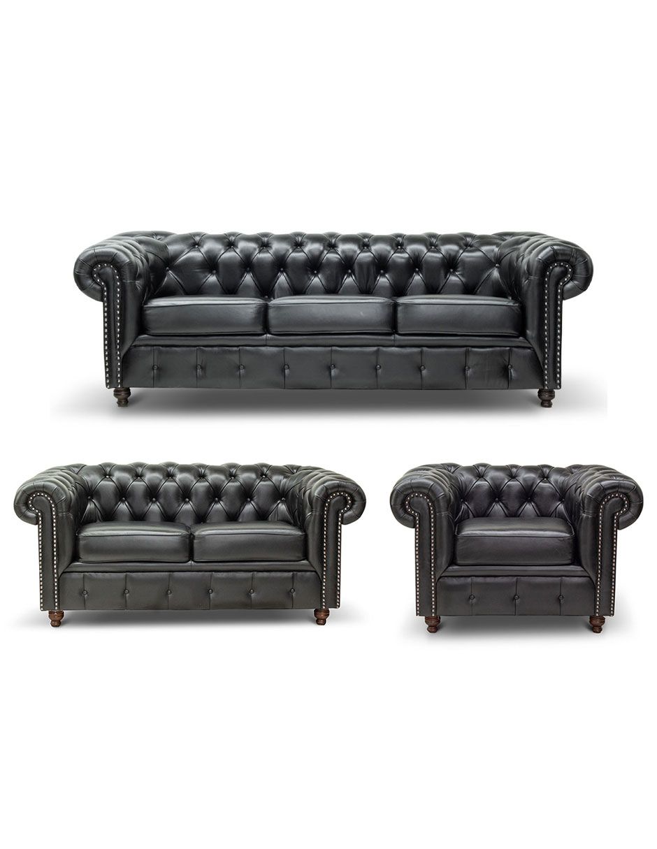 Sala 3-2-1 Chesterfield Negro 100% Piel Genuina Anilina