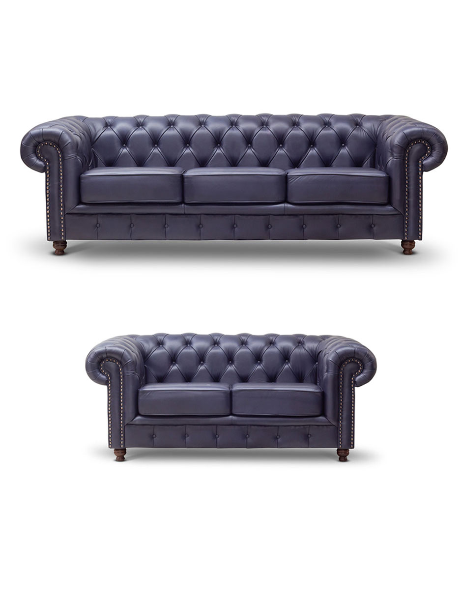 Sala 3-2 Chesterfield 100% Piel Genuina Azul Navy