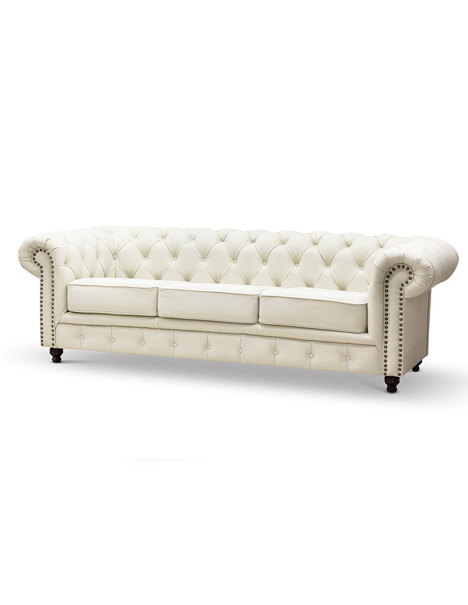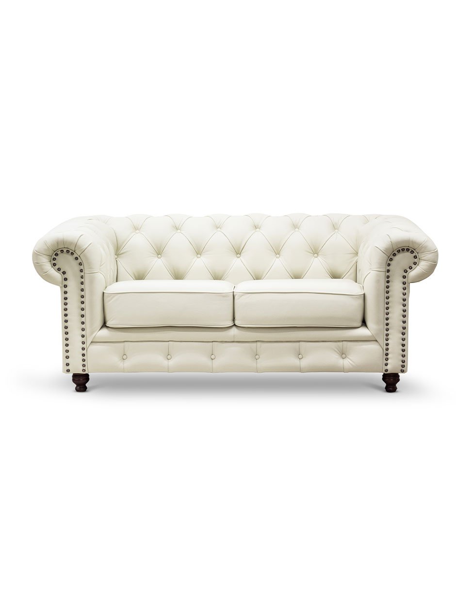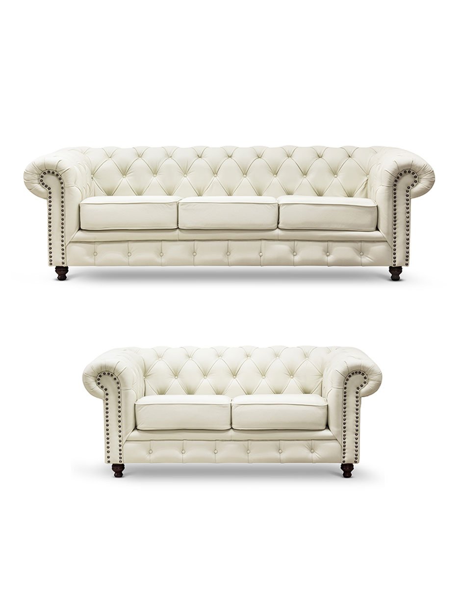 Sala 3-2 Chesterfield 100% Piel Genuina Crema