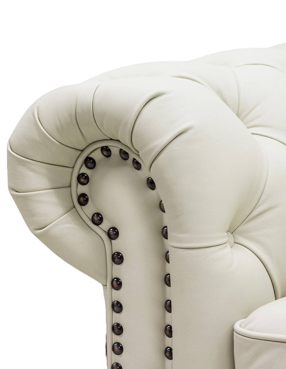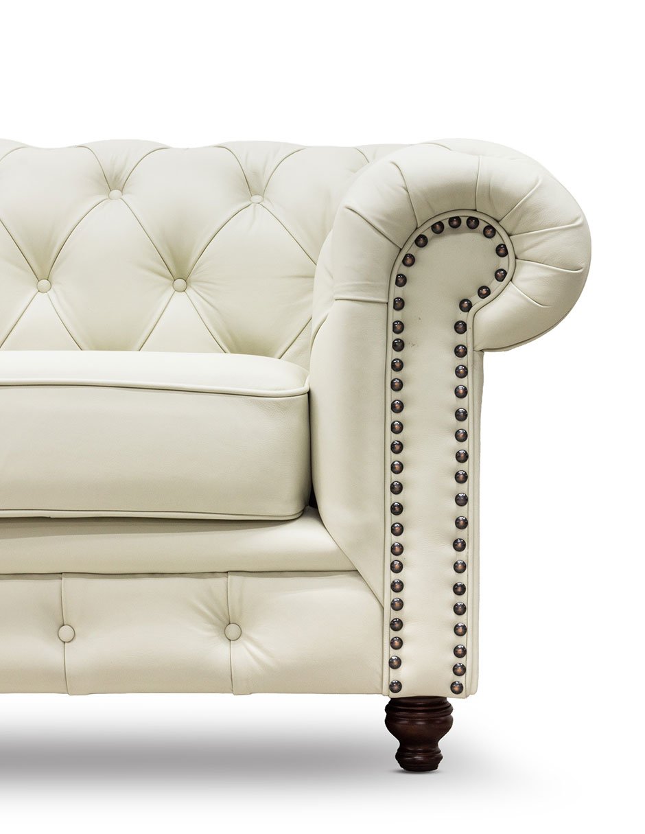 Sala 3-2 Chesterfield 100% Piel Genuina CREMA