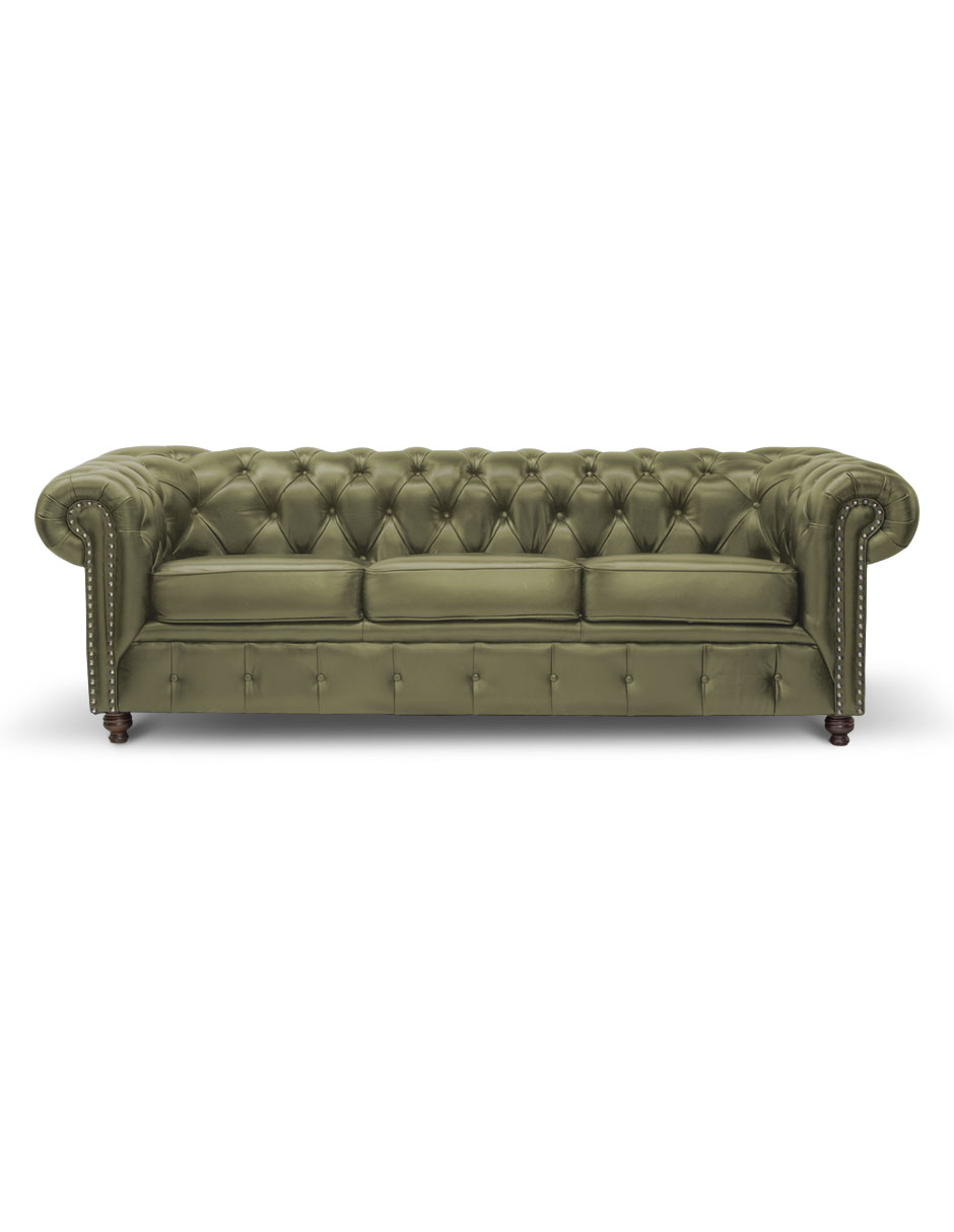 Sofá 3 plazas Chesterfield Verde Musgo 100% Piel Genuina Anilina
