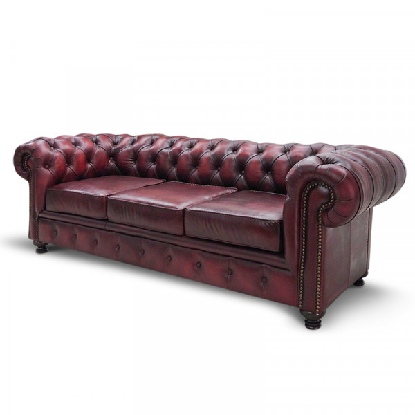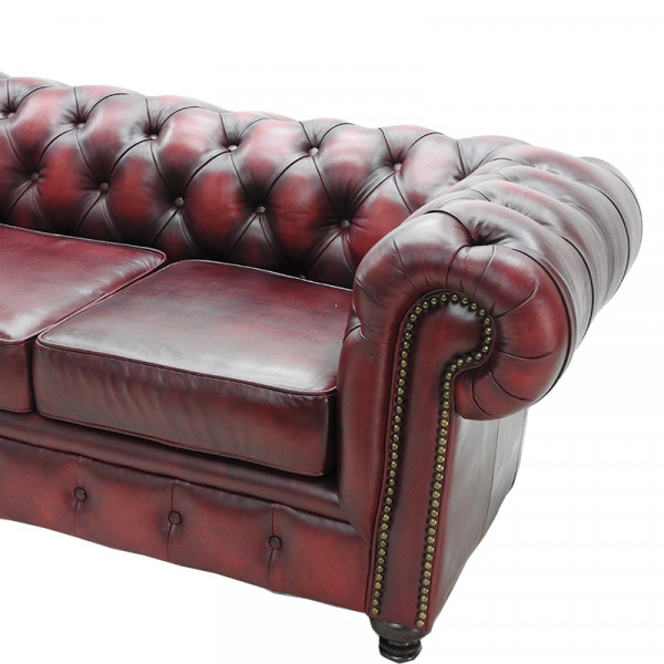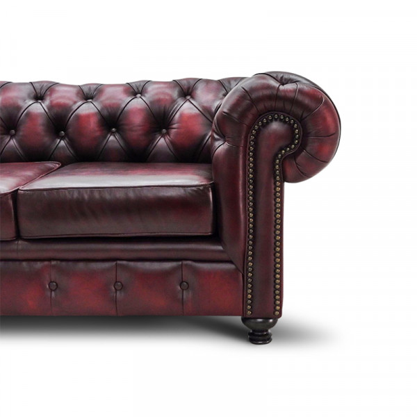 Sofá 3 plazas Chesterfield Vino 100% Piel Genuina Anilina