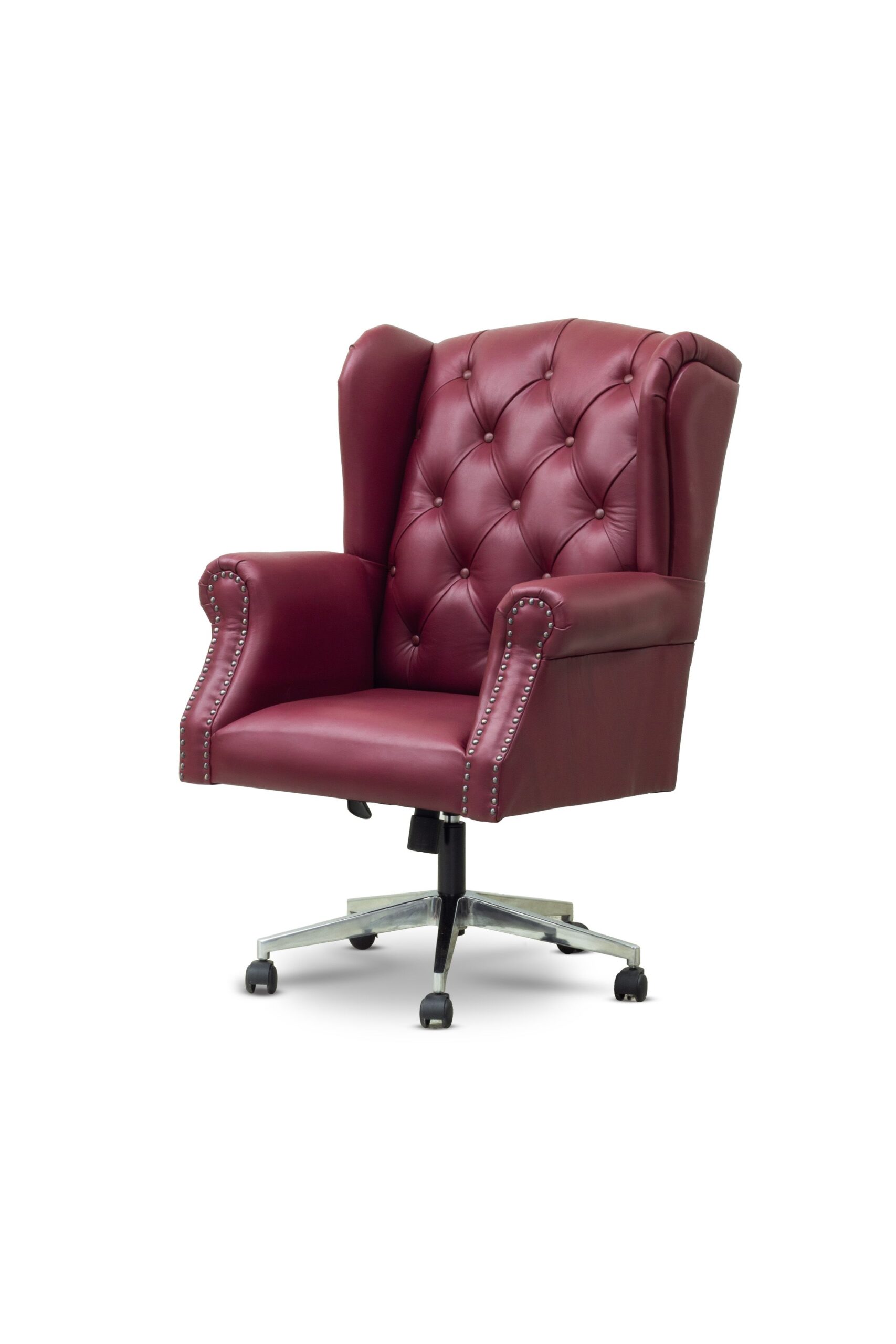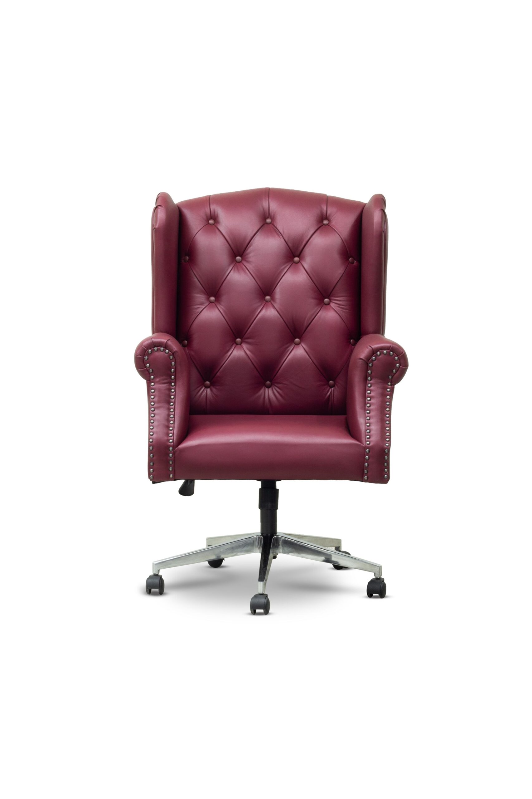SILLA EJECUTIVA VINO 100% PIEL GENUINA ANILINA