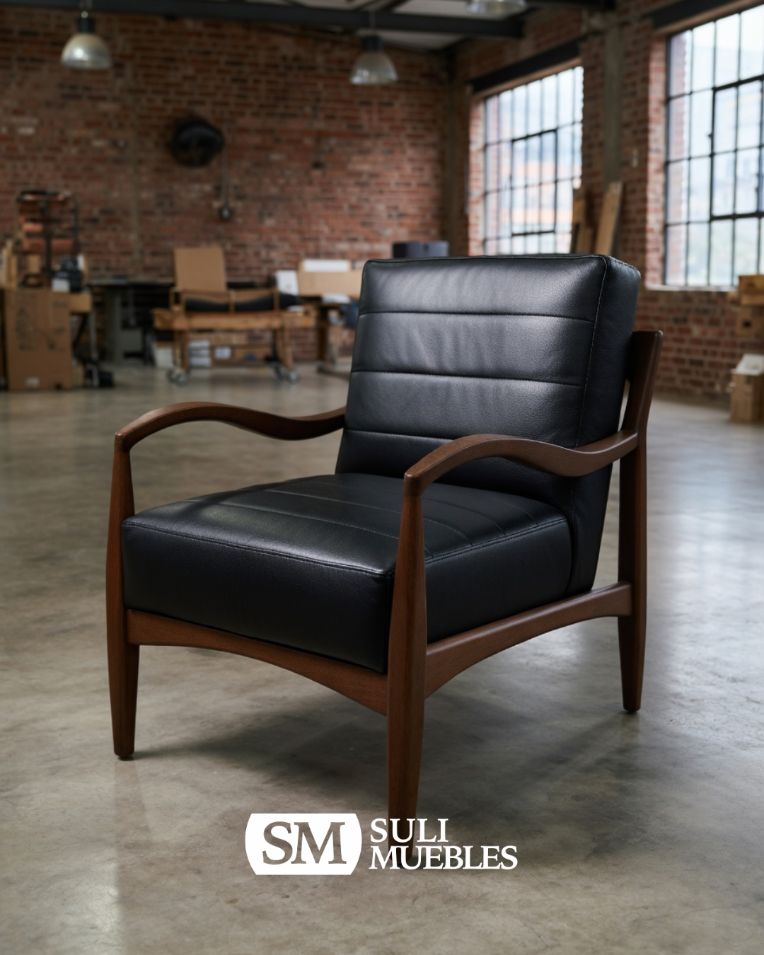 SILLÓN GLORIA NEGRO 100% PIEL GENUINA ANILINA